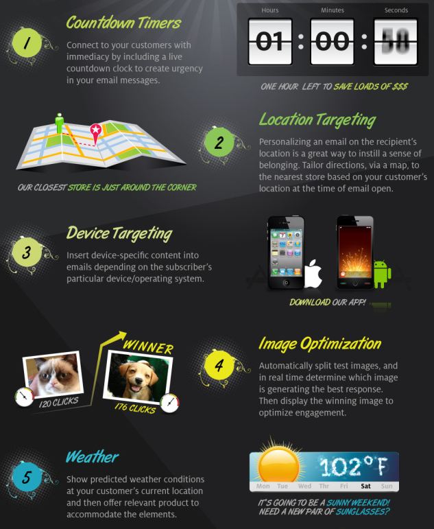 3- Cihaz odaklı içerik: Birçok müşteri, emai’ini akıllı telefon vasıtasıyla kontrol ediyor. Eğer kullandığı cihazı bilirseniz, hali hazırda telefonuyla arasında bir bağ kurmuş olan müşterinizi etkileyebilirsiniz. Belki mevcut uygulamanızı tanıtırsınız veya uygulamalarla ilgili tavsiyeler sunarsınız. Akıllı telefon kullanıcıları, bu konularda çok daha duyarlı ve ilgilidir.