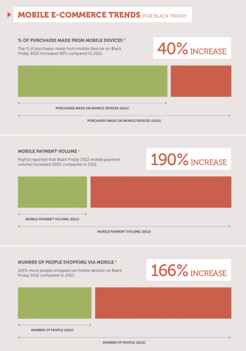 Yalnızca 2011-2012 yılları arasındaki fark bile mobil pazarlamanın önemini gözler önüne seriyor. Yayınlanan bilgi grafiğinde en çok göze çarpan nokta; mobil cihazlar üzerinden yapılan alışveriş ve mobil ödeme rakamlarındaki yüksek artış oranıdır. Yalnızca mobil siteler ve uygulamalar üzerinden yapılan alışverişler ile bu kategoriyi sınıflandırmayalım.
