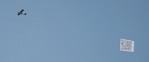 Yukarıdaki örnekte de görebileceğiniz üzere uçağın arkasına QR kodun bulunduğu bir bez bağlanmış. Bunu tarayabilmek için Superman olmak gerekiyor. Normal bir insanın bu kodu tarayabilmesi mümkün değil. Yani böyle bir uygulama, QR kod stratejileri arasında hiç yer almamalı.